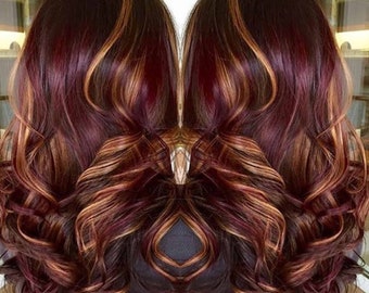 Luxury Burgundy With Caramel Balayage 100 Human Hair Swiss Etsy Uk