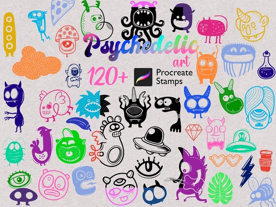 Procreate 120 Psychedelic Art Stamps Brush Pack Alien Monster Etsy